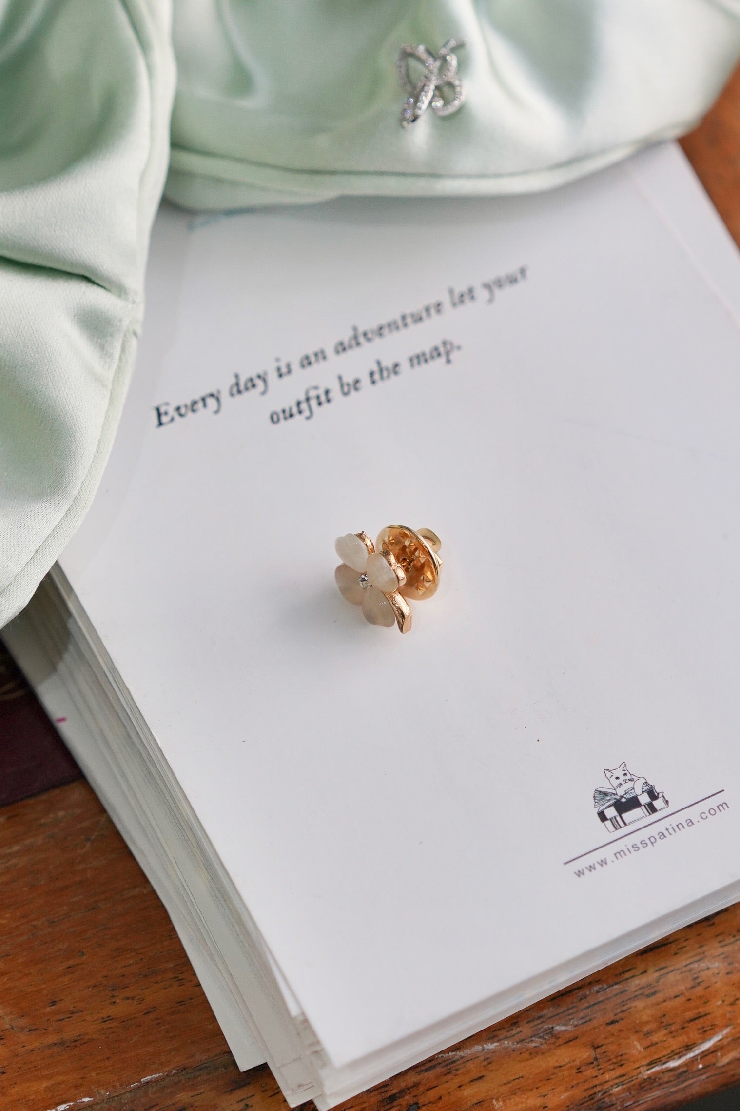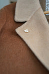 A tiny charm of luck and light — this mini four-leaf clover pin features soft pink cat’s-eye petals with a sparkling crystal at its heart.