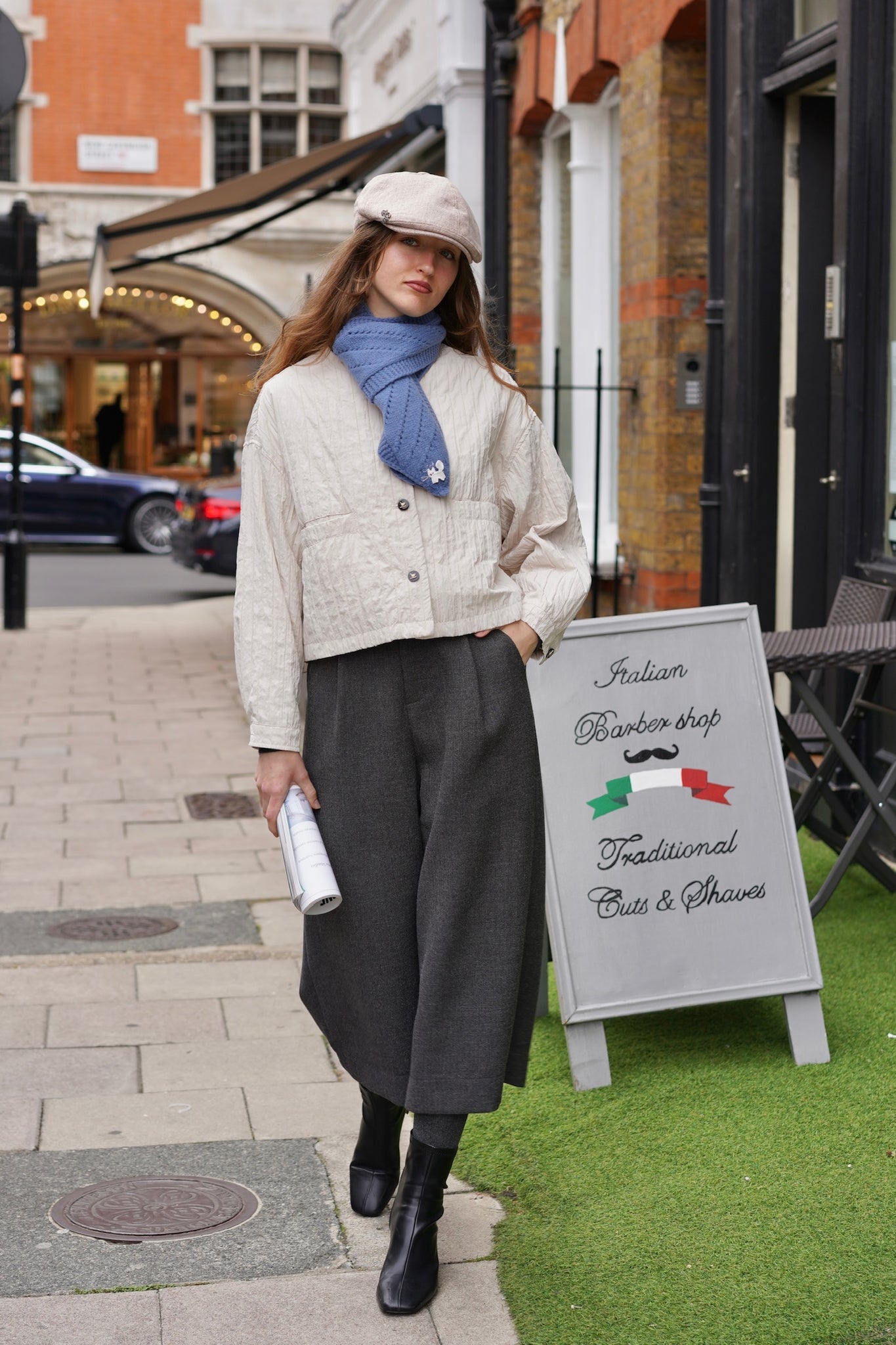 The Holloway Bat Wing Jacket blends gothic elements with playful, modern details. Its clean, minimal silhouette echoes a classic liner jacket — lightweight in appearance without the bulk, perfect for everyday wear. A subtle bat-wing pleat at the back adds a seasonal, Halloween-inspired touch, giving it character. Crafted from textured light weight. The collarless neckline keeps the style contemporary, while adjustable two-button cuffs let you tailor the fit. Versatile enough for work, casual, or seasonal outfits, it’s understated yet thoughtfully detailed — finished with whimsical bird-shaped buttons that add a charming signature touch.