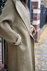 Holmesian Oakwood Wool Coat is crafted from a luxurious double-faced wool blend (70% wool) that feels both warm and refined. The Oakwood palette and clean, sculpted silhouette echo the quiet beauty of an autumn forest.