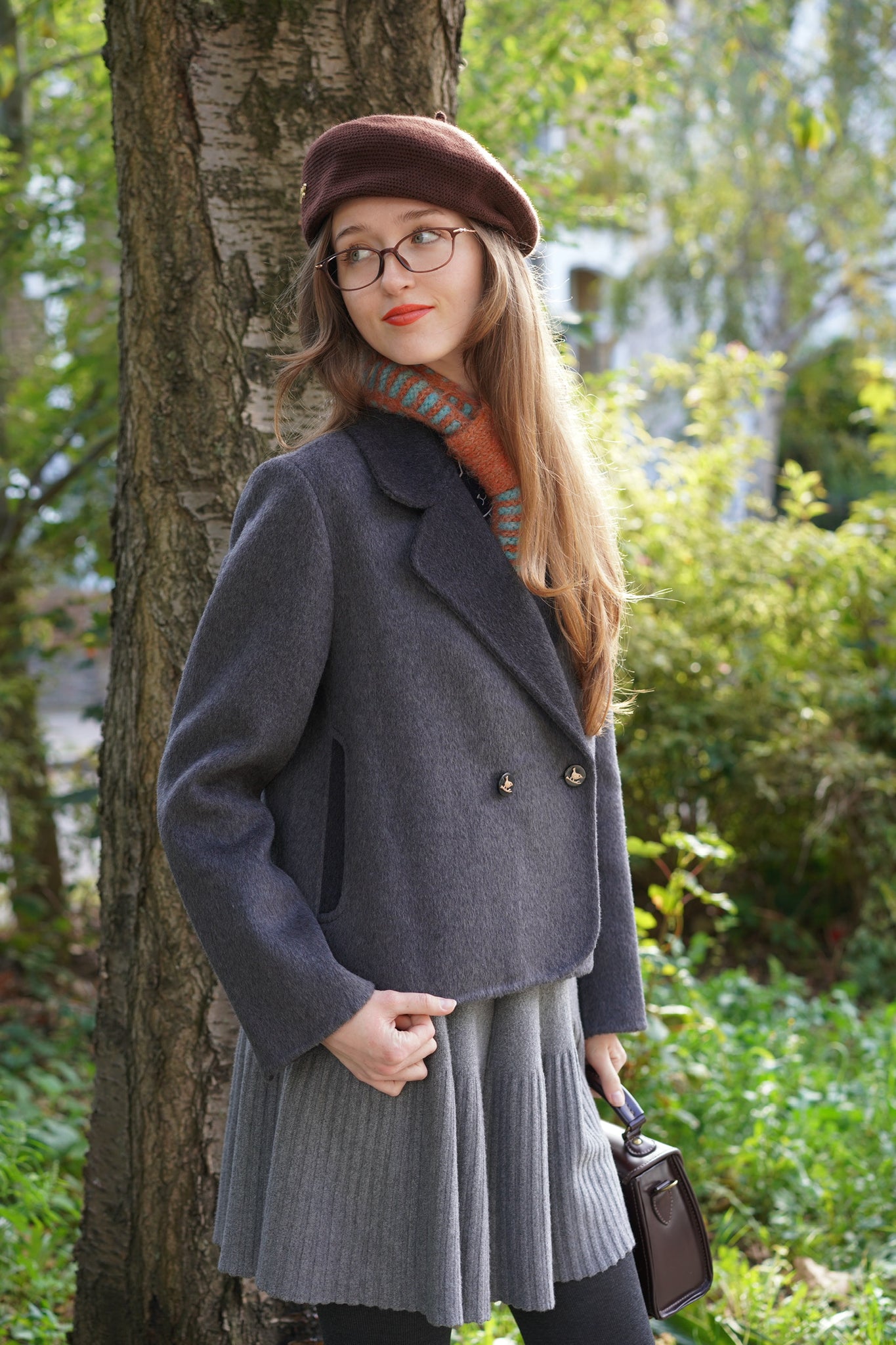 A playful twist on a timeless preppy classic. Crafted from a premium double-faced fabric with 70% wool, this blazer offers a refined texture, soft warmth, and a premium hand feel. The cropped double-breasted silhouette brings a sharp yet feminine look, elevated with contrast lapels and cuffs for a chic retro–preppy style.