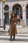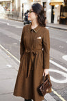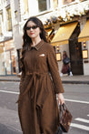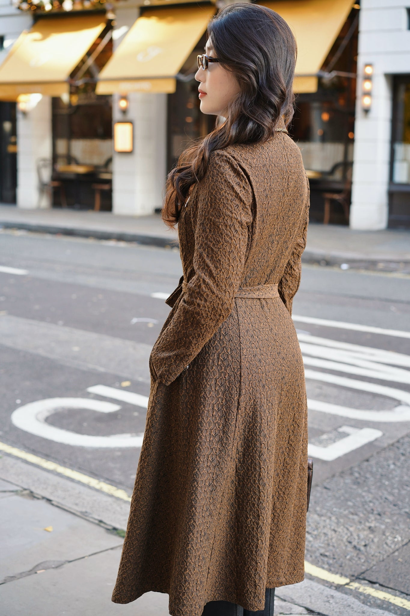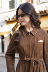Make a statement with this deep brown coat dress, blending British military-inspired tailoring with whimsical woodland charm. Crafted from stretchy, textured mid weight fabric, it offers a structured silhouette with a flattering fit and all-day comfort. Thoughtful details like practical pockets and a playful squirrel motif add both function and character. Perfect for those who seek polished style with a touch of personality!