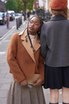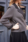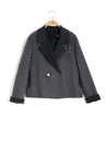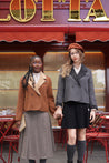 A playful twist on a timeless preppy classic. Crafted from a premium double-faced fabric with 70% wool, this blazer offers a refined texture, soft warmth, and a premium hand feel. The cropped double-breasted silhouette brings a sharp yet feminine look, elevated with contrast lapels and cuffs for a chic retro–preppy style.