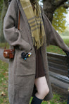 Soft and delightfully snug — this oversized knitted coat wraps you in warmth and ease. Crafted in a beautiful earthy tone from thick, soft yarn, it feels like a gentle hug on chilly days. Designed with a roomy hood, dropped shoulders, and deep pockets for a relaxed, everyday silhouette. Inspired by quiet library afternoons, a little embroidered Bibliocat sits by your side — a gentle reminder to slow down and enjoy life’s simple comforts.