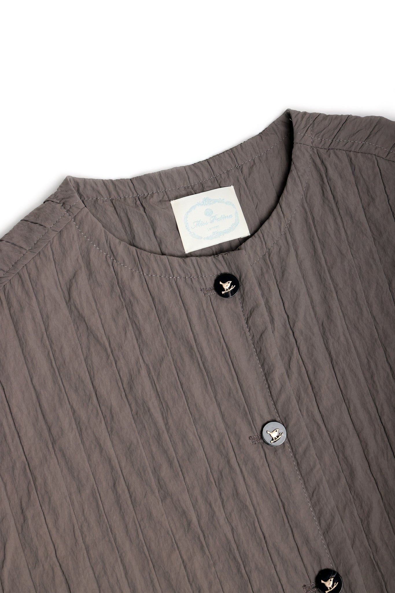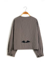 The Holloway Bat Wing Jacket blends gothic elements with playful, modern details. Its clean, minimal silhouette echoes a classic liner jacket — lightweight in appearance without the bulk, perfect for everyday wear. A subtle bat-wing pleat at the back adds a seasonal, Halloween-inspired touch, giving it character. Crafted from textured light weight. The collarless neckline keeps the style contemporary, while adjustable two-button cuffs let you tailor the fit. Versatile enough for work, casual, or seasonal outfits, it’s understated yet thoughtfully detailed — finished with whimsical bird-shaped buttons that add a charming signature touch.