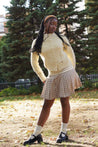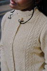 A folk-inspired cardigan that feels like a woodland keepsake. Knitted in a richly textured pattern with intricate cables, it echoes the charm of vintage alpine knits while blending into woodland storytelling. The speckled yarn recalls autumn leaves scattered on the forest floor - or the delicate flecks in vanilla cream. Peeking playfully at the hem is a tiny embroidered hedgehog, adding a whimsical companion to your outfit. Available in Butter and Cream shades, it pairs beautifully with our Anita Top - letting the delicate lace ruffles peek out for a touch of romantic layering
