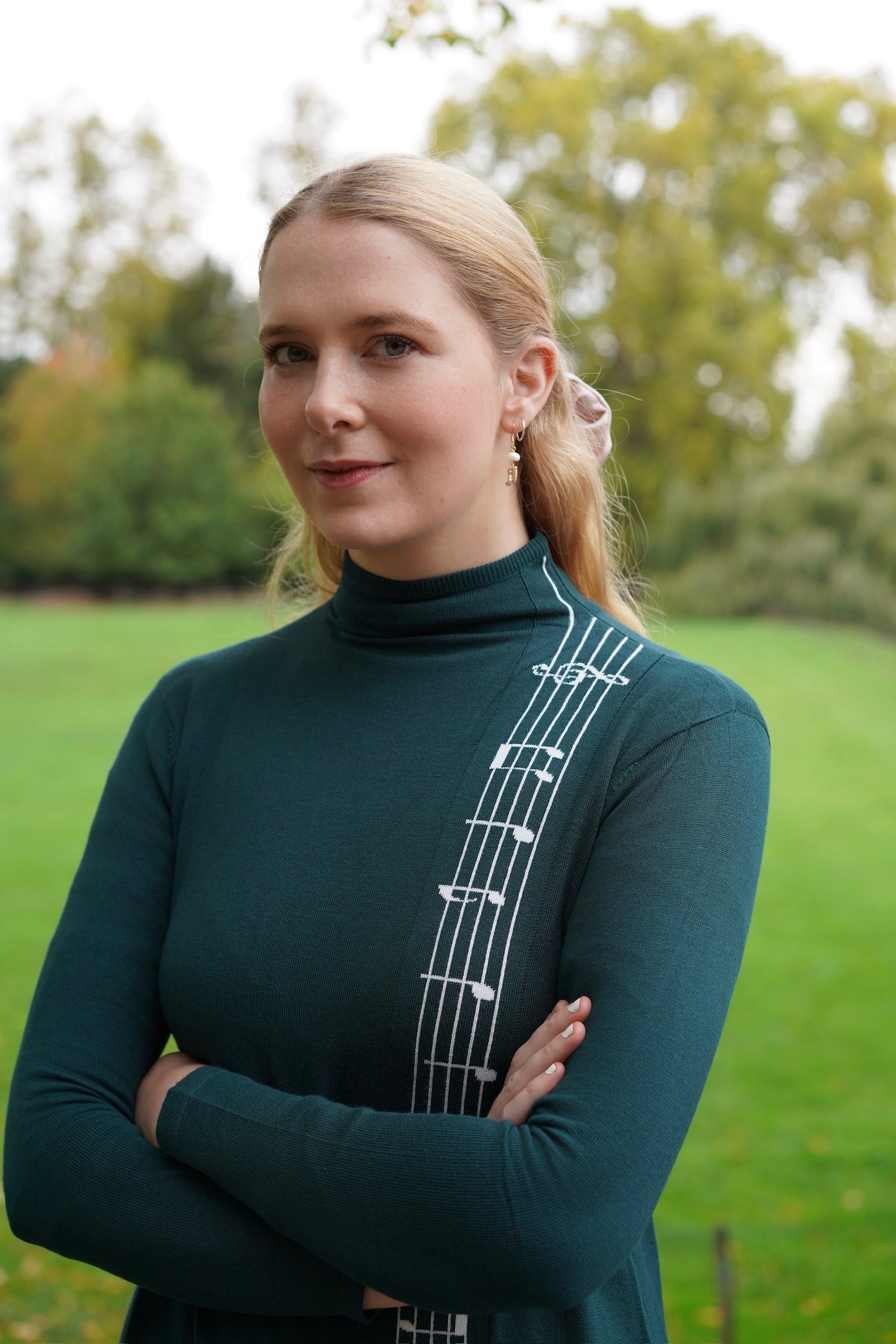 Add the ultimate musical inspiration to your winter ensembles with the Elysian Melody Midi Dress in green. With its distinctive musical notes print, this full-length dress has been constructed in a super soft ribbed knit, finished by a fitted waistband to add definition to the loose silhouette. Get into the music and get into this dress!