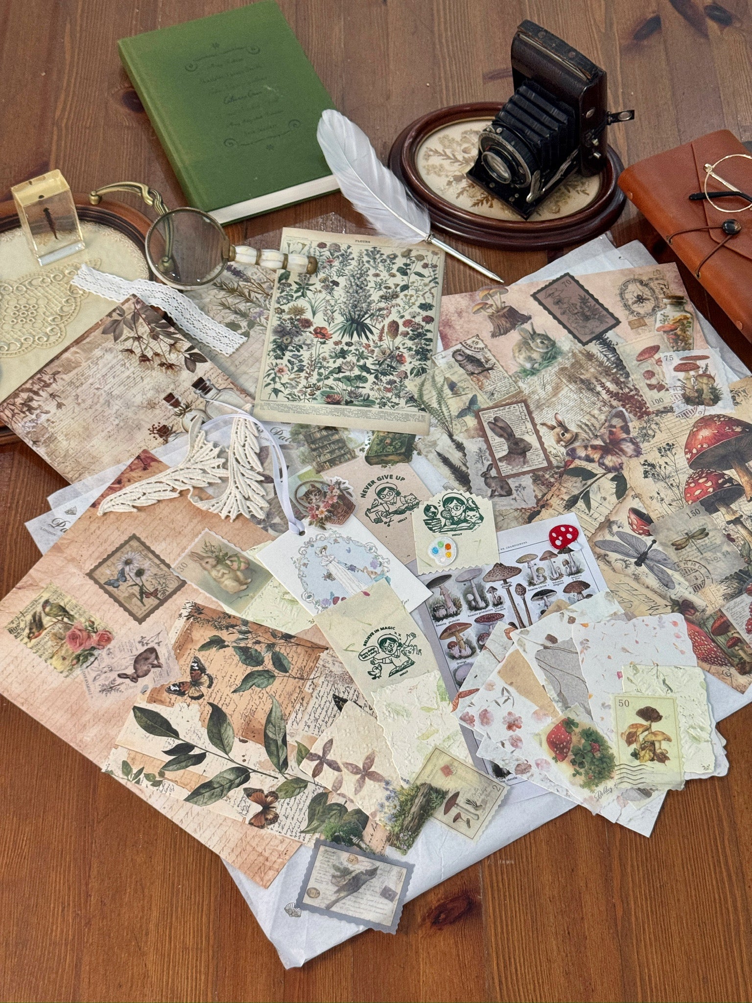 Inspired by woodland rabbits, mushrooms, soft florals and vintage apothecary details, each pack is filled with gentle pieces to add warmth, texture and story to your pages.