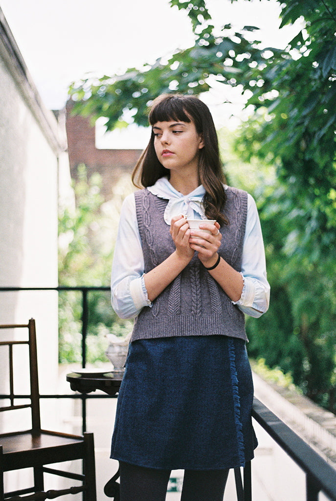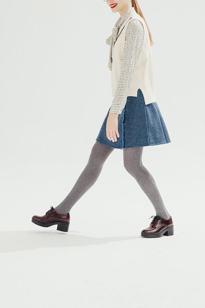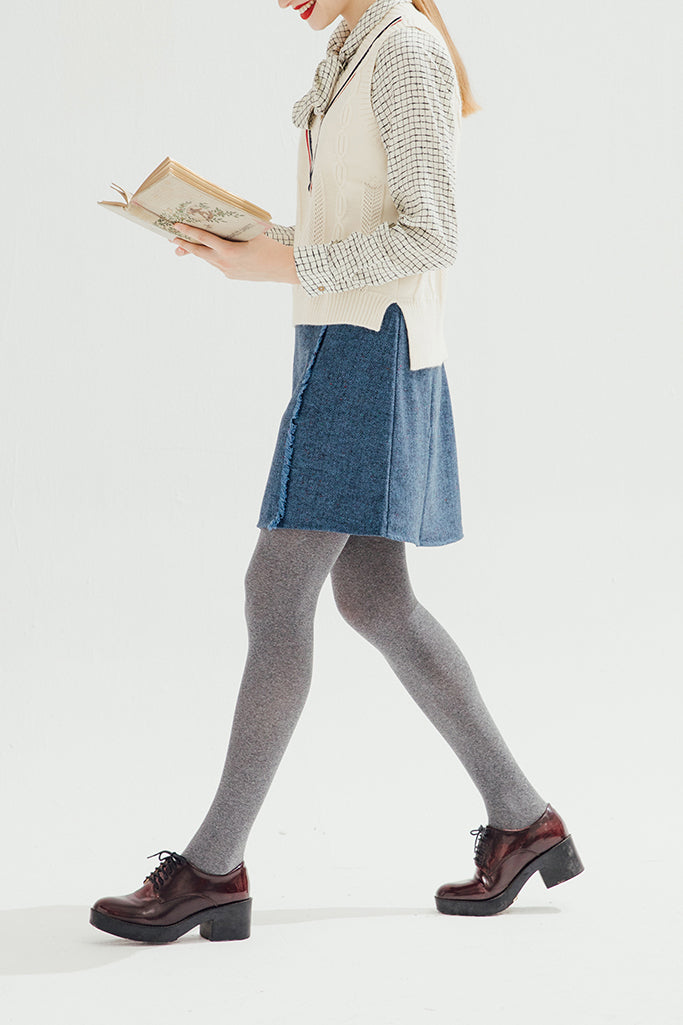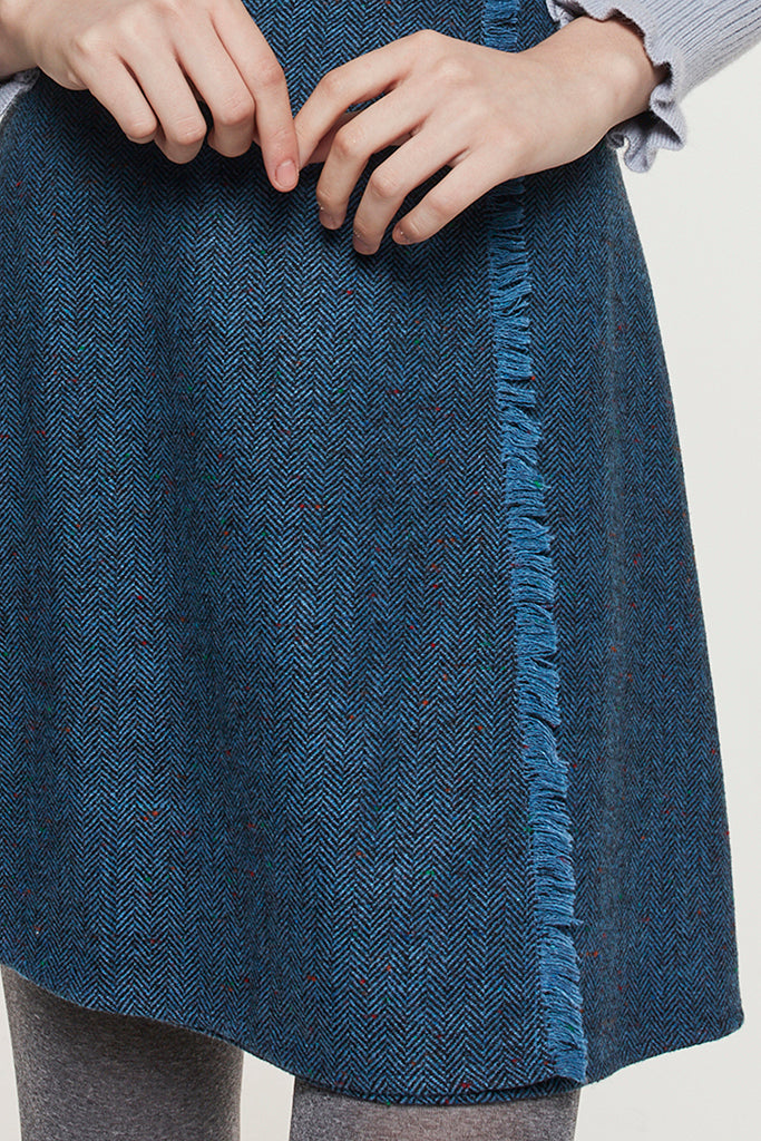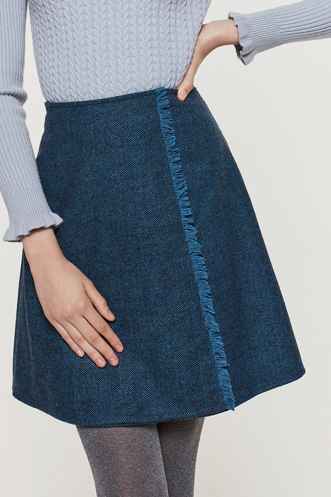Escape to the faraway hills and watch the winter sunset drift away and engage in your most favourite winter pastime. A calm mini kilt skirt finished off with a soft frayed trim.