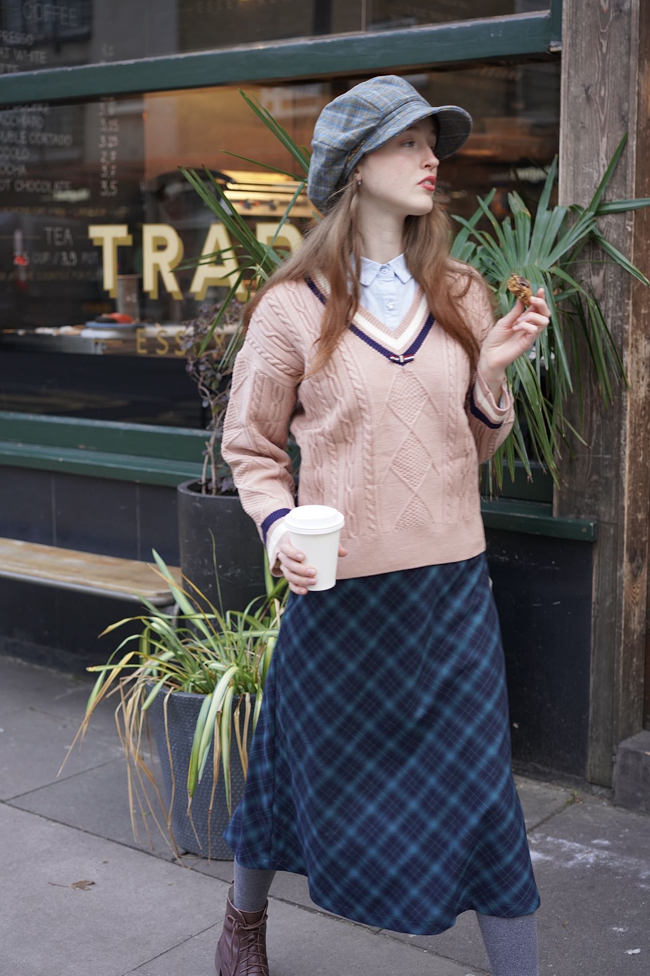 Peaky Blade Newsboy Cap Hat (Navy Blue Plaid)