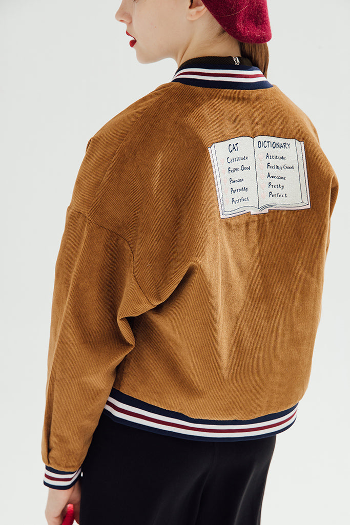 Kitty + Literature= Kiterature, get it? This original print embroidered with divine illustrations is bound to get people wanting to cop your style. With new words to teach your cat such as Pawsome and Purrty in the embroidered cationary at the back, you’ll be strutting the streets with trend and uniqueness.