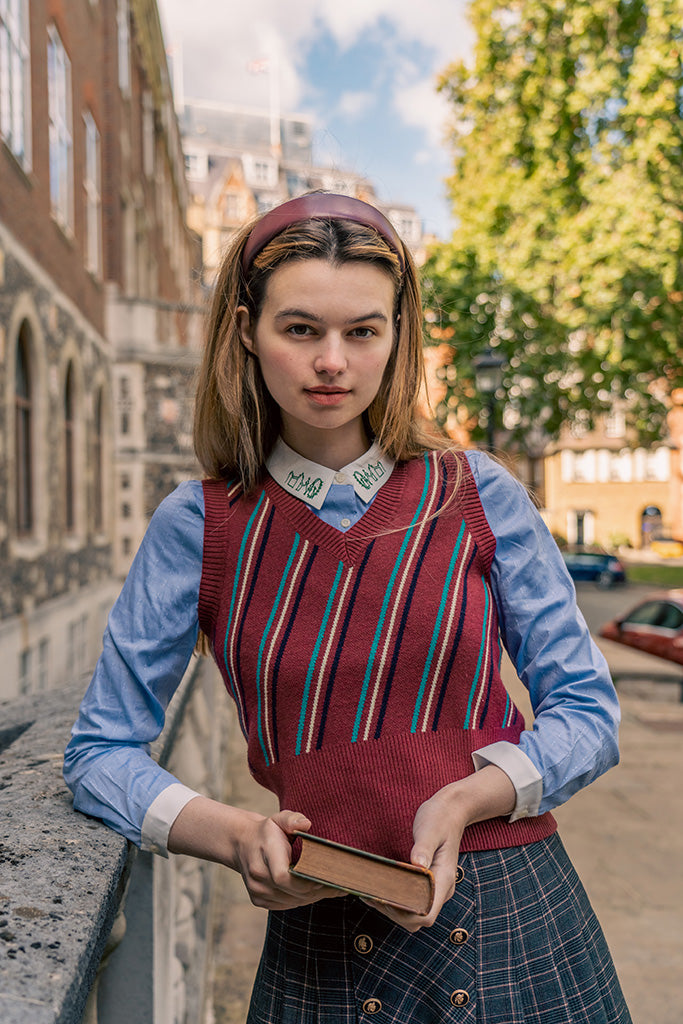 A delightful combination of work and play, our London Ride Shirt is 100% cotton and office friendly while allowing you to flash your playful side. As part of Miss Patina’s London Ride Kitten collection, the collar is embroidered with the London skyline in jade and on a bed of cotton polka dots, silly kittens scoot all over London and all down your front! A truly original piece.
