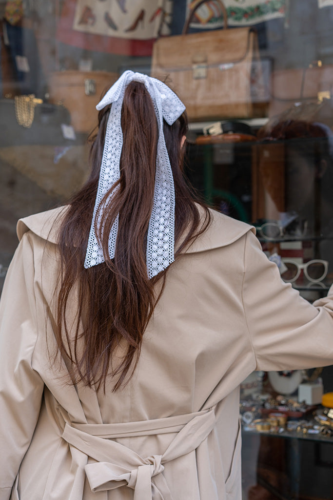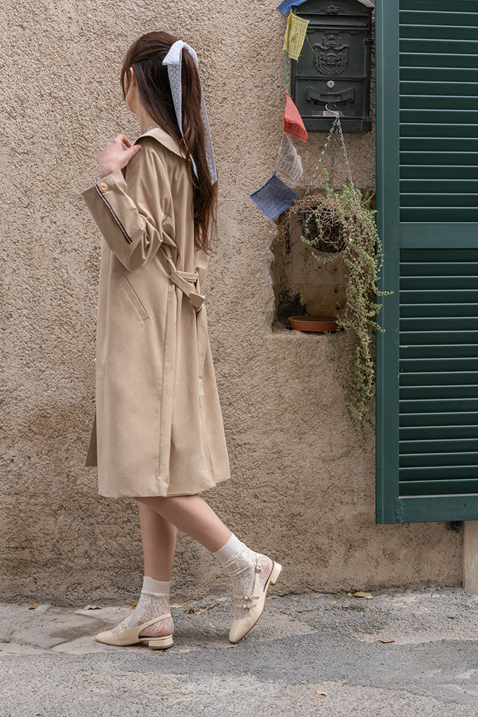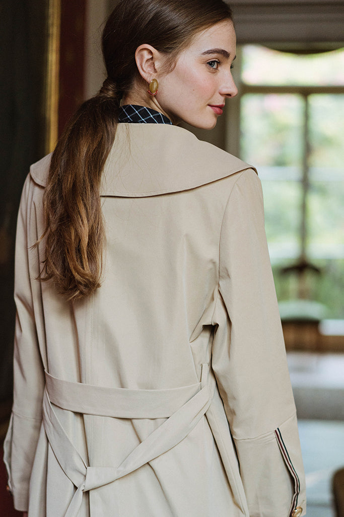 • Gorgeously tailored, classic khaki trench coat with big peter pan collar