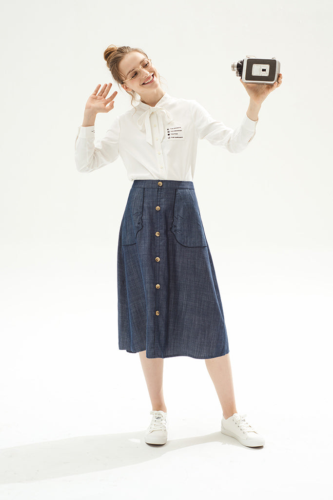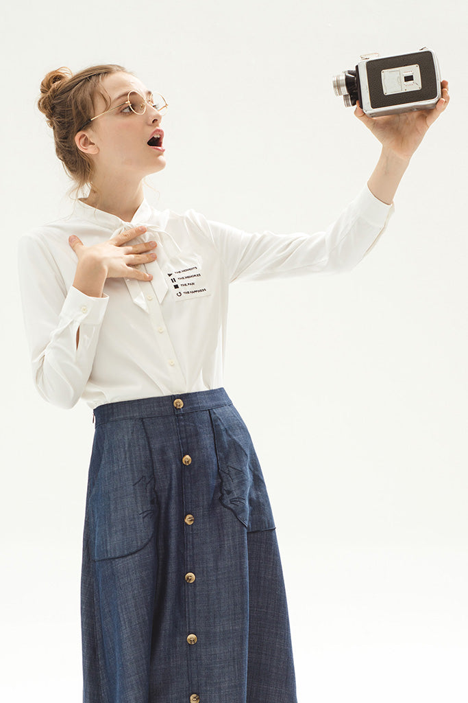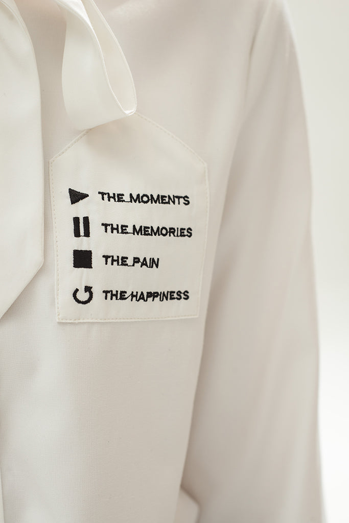 Live in the moment, pause the memories, stop the pain, and be happy always. Dainty music player markings on the cuff remind you to live your life as you wish and the bow tie collar adds that perfect little detail on top. Pair with a vintage mini skirt, glasses, and a skirt to complete the look!
