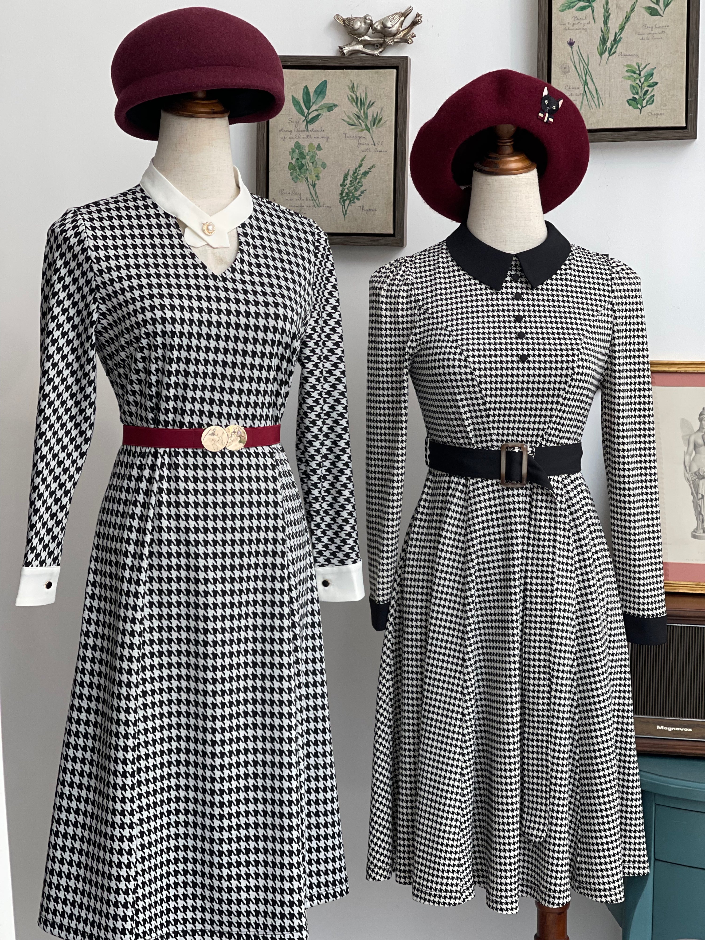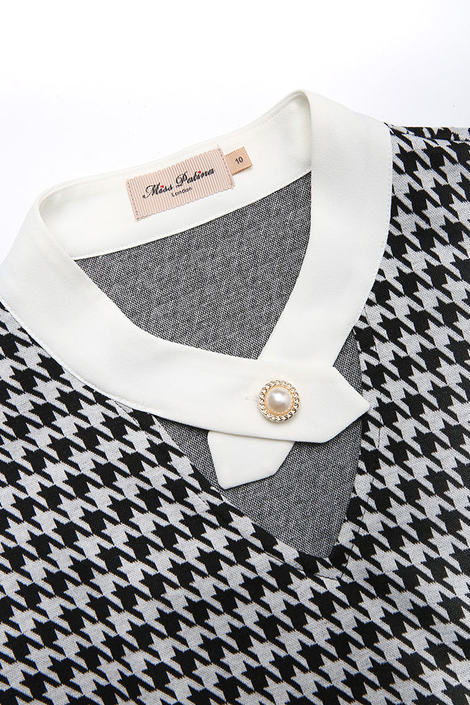 A classic houndstooth dress perfect for special occasions, the Windsor dress gives you the right amount of 50s elegance mixed with modern style. With a white round neckline and keyhole cut-out, it also features an a-line skirt for a flattering shape. Pair with a pillbox hat, gloves and a belt for a fabulously accessorised look!