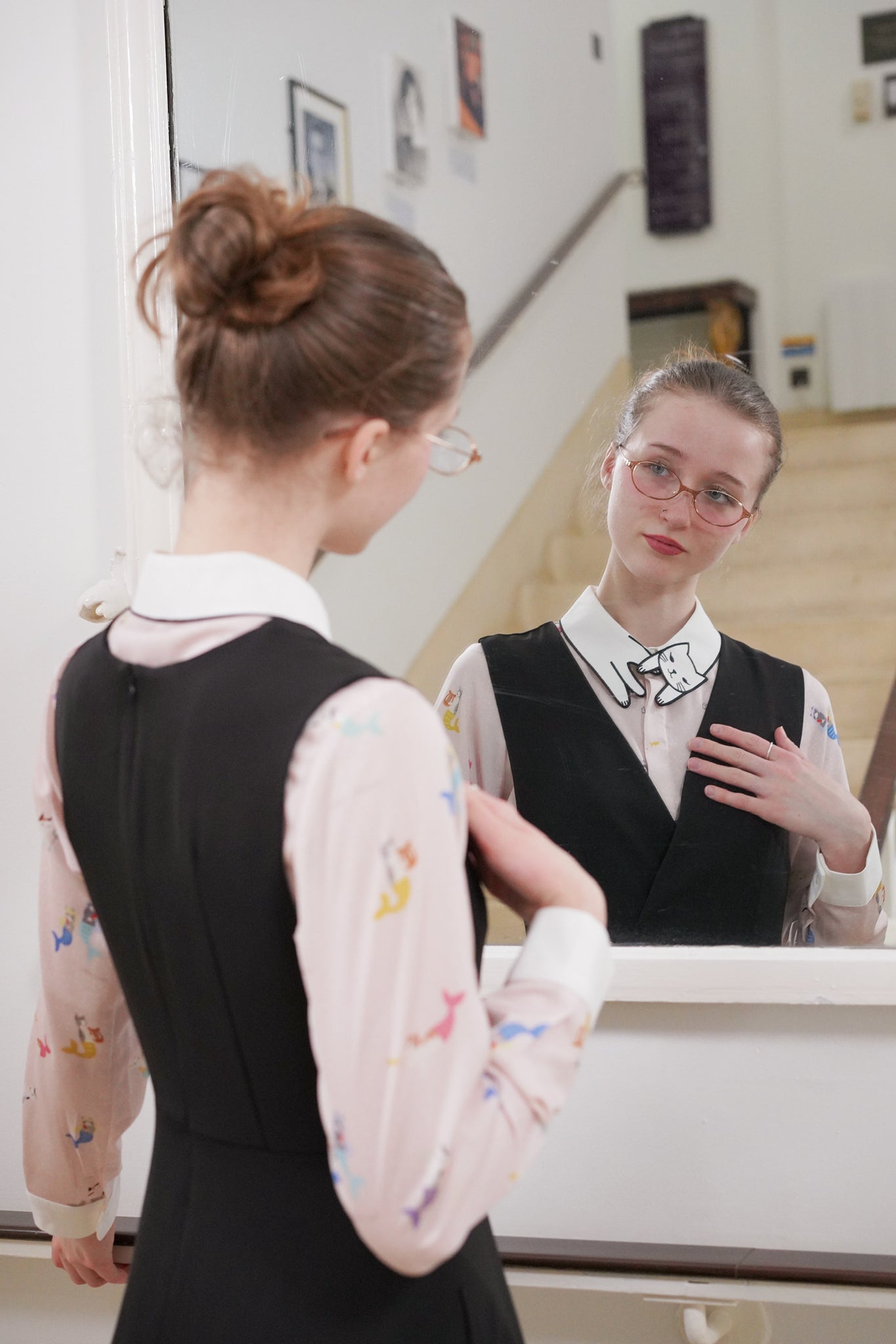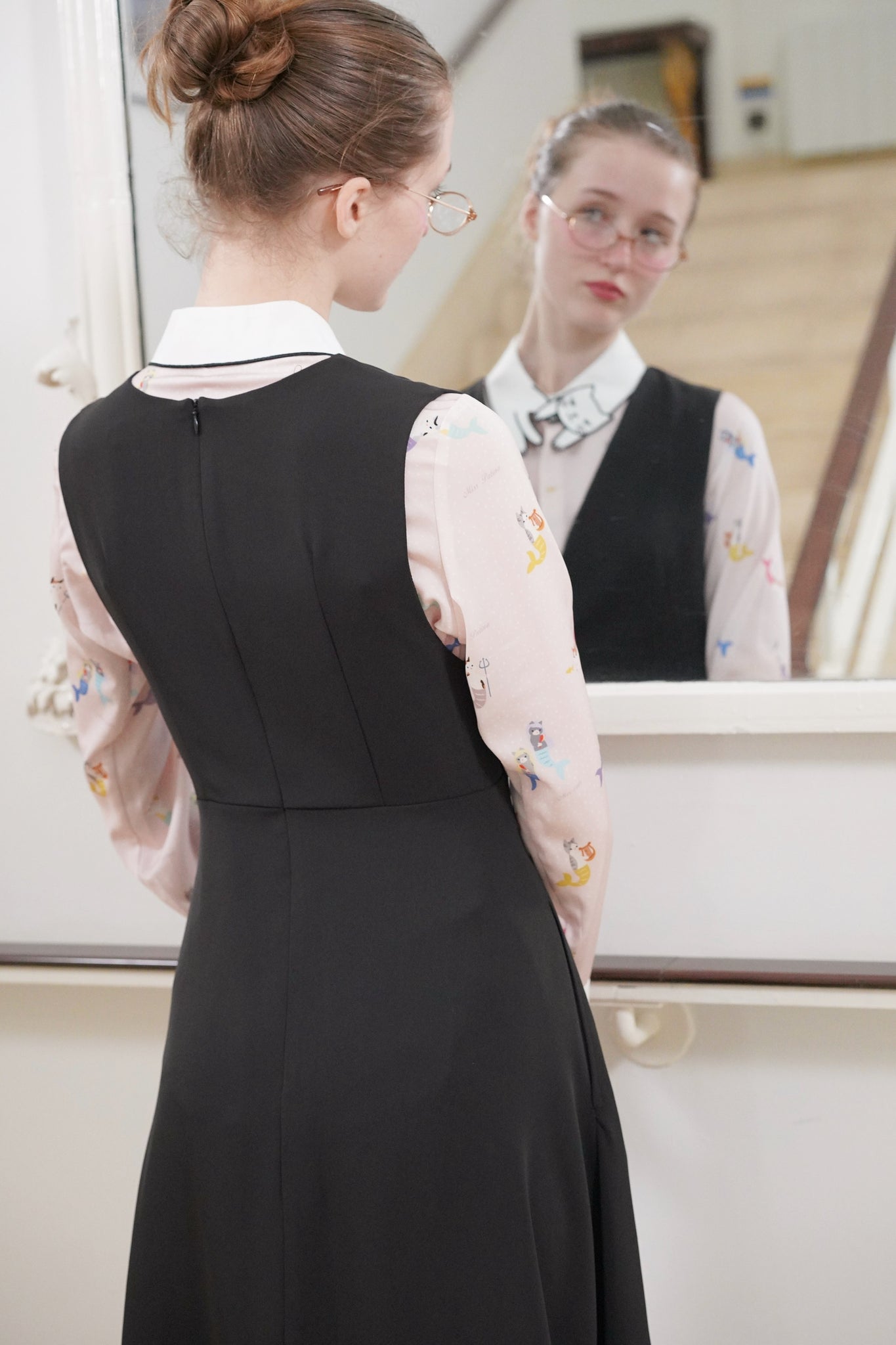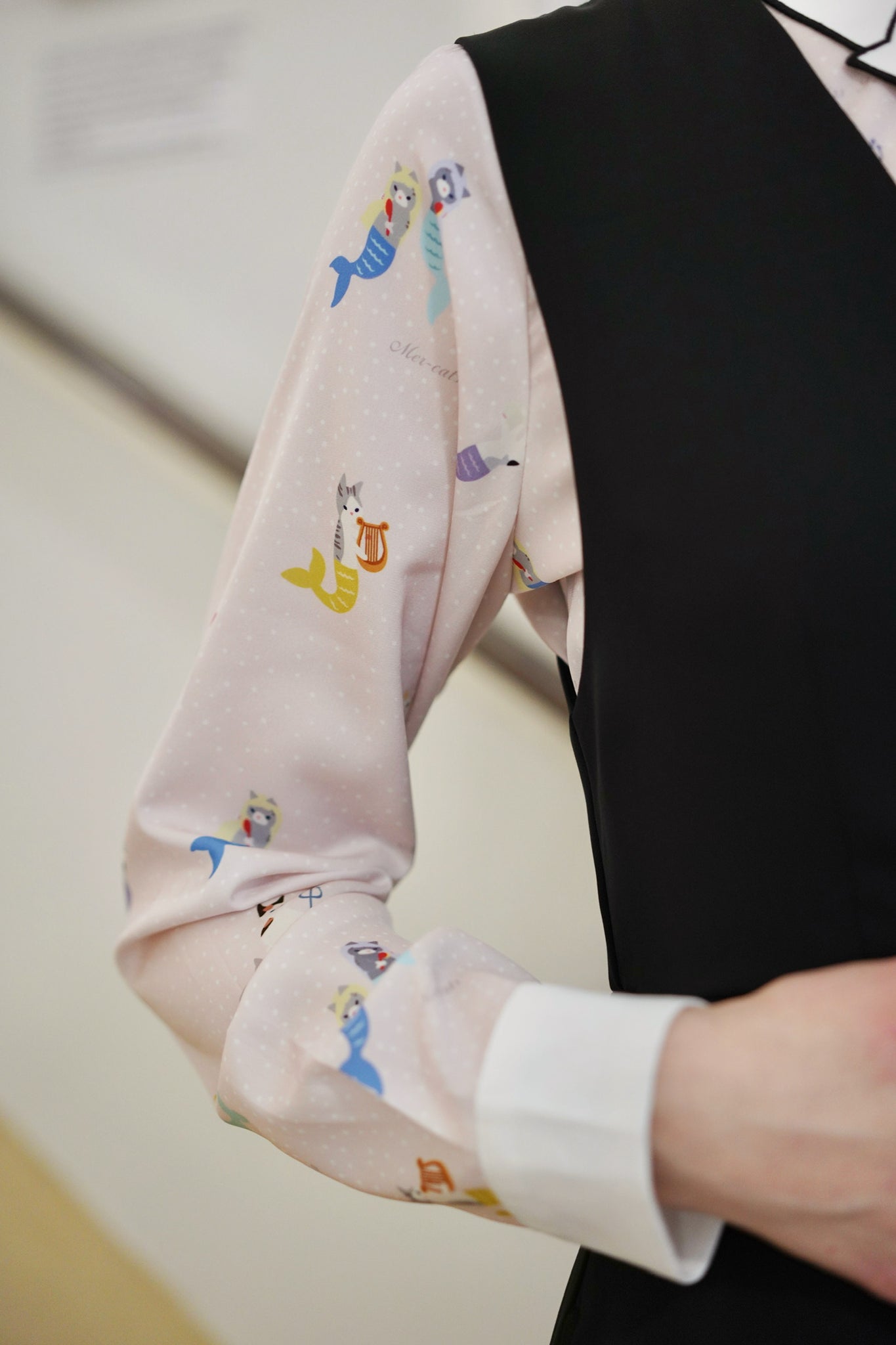 Inspired by our bestselling Love Cat Shirt, the Mer-Cat Love Shirt brings a playful nautical twist to a cult classic. Set against a soft blush base, this dreamy print features whimsical mer-cats swimming across the fabric. Charming, quirky and irresistibly cute. Designed with a relaxed, easy-to-wear silhouette, the shirt features our signature crisp contrast ‘Love Cat’ kitty collar to finish. Style tucked into skirts, pinafores, layered under knitwear or worn effortlessly on it’s own