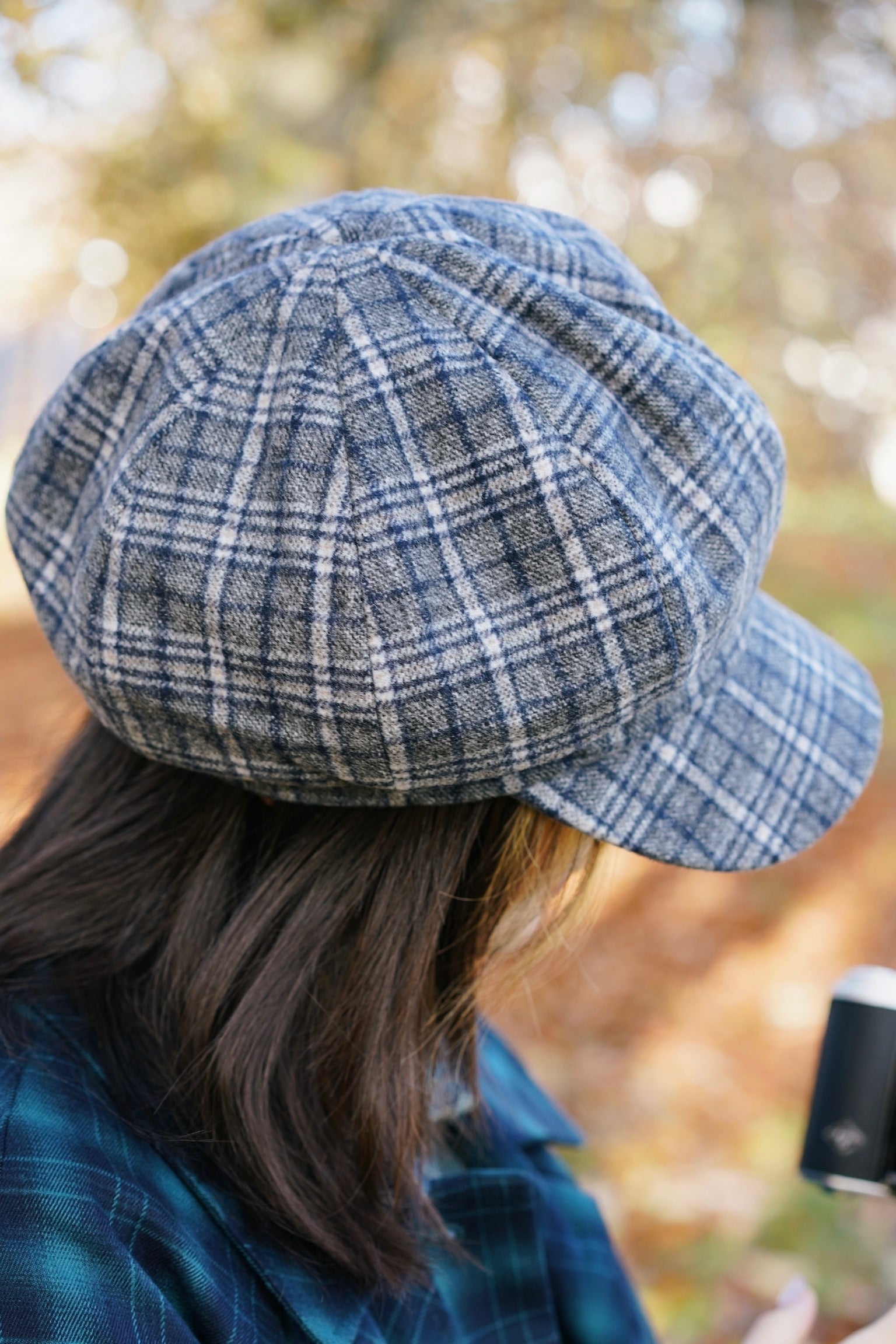 Peaky Blade Newsboy Cap Hat (Navy Blue Plaid)