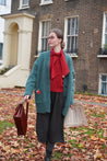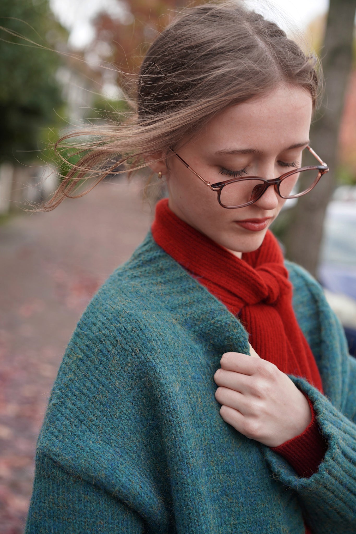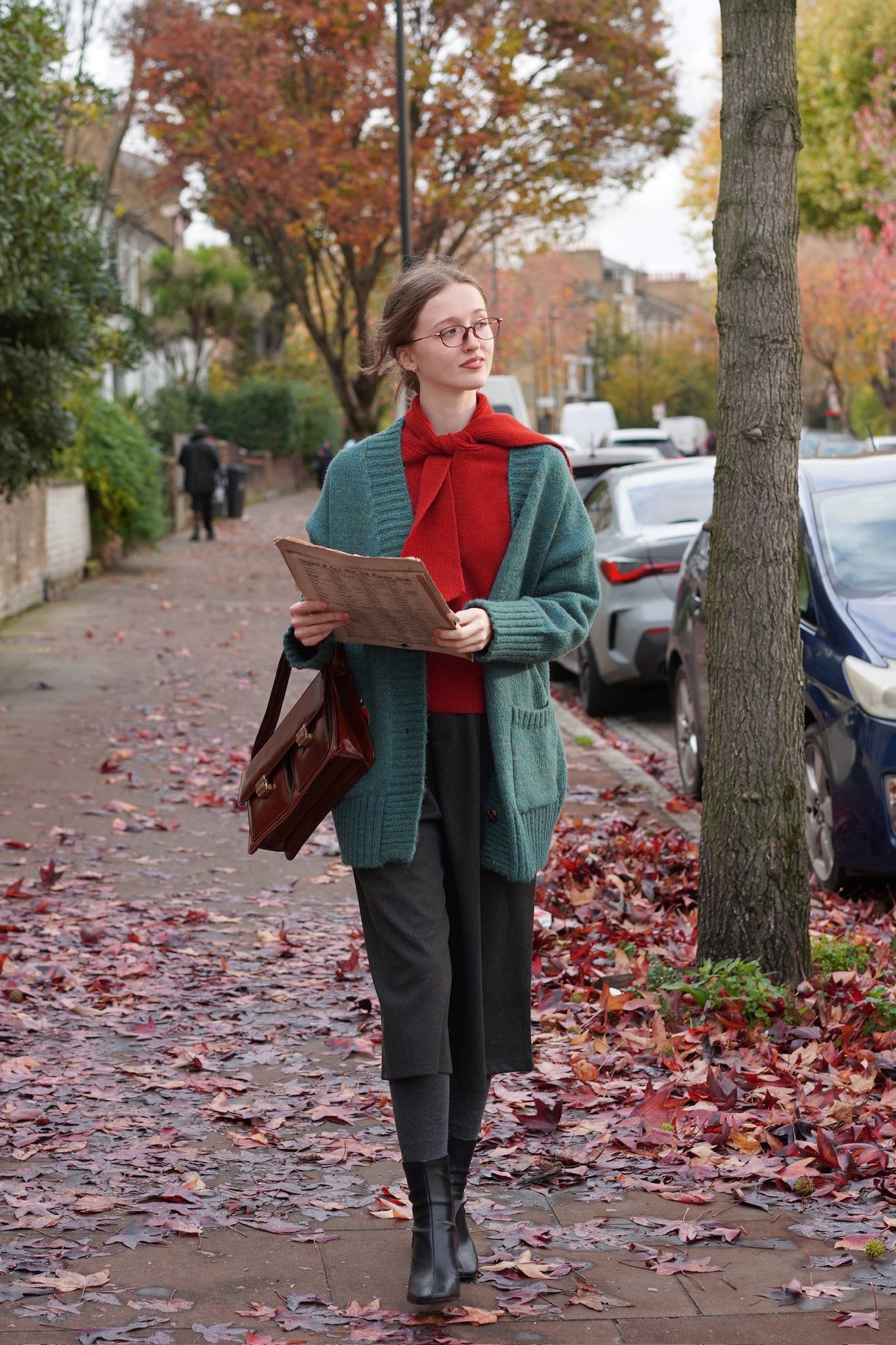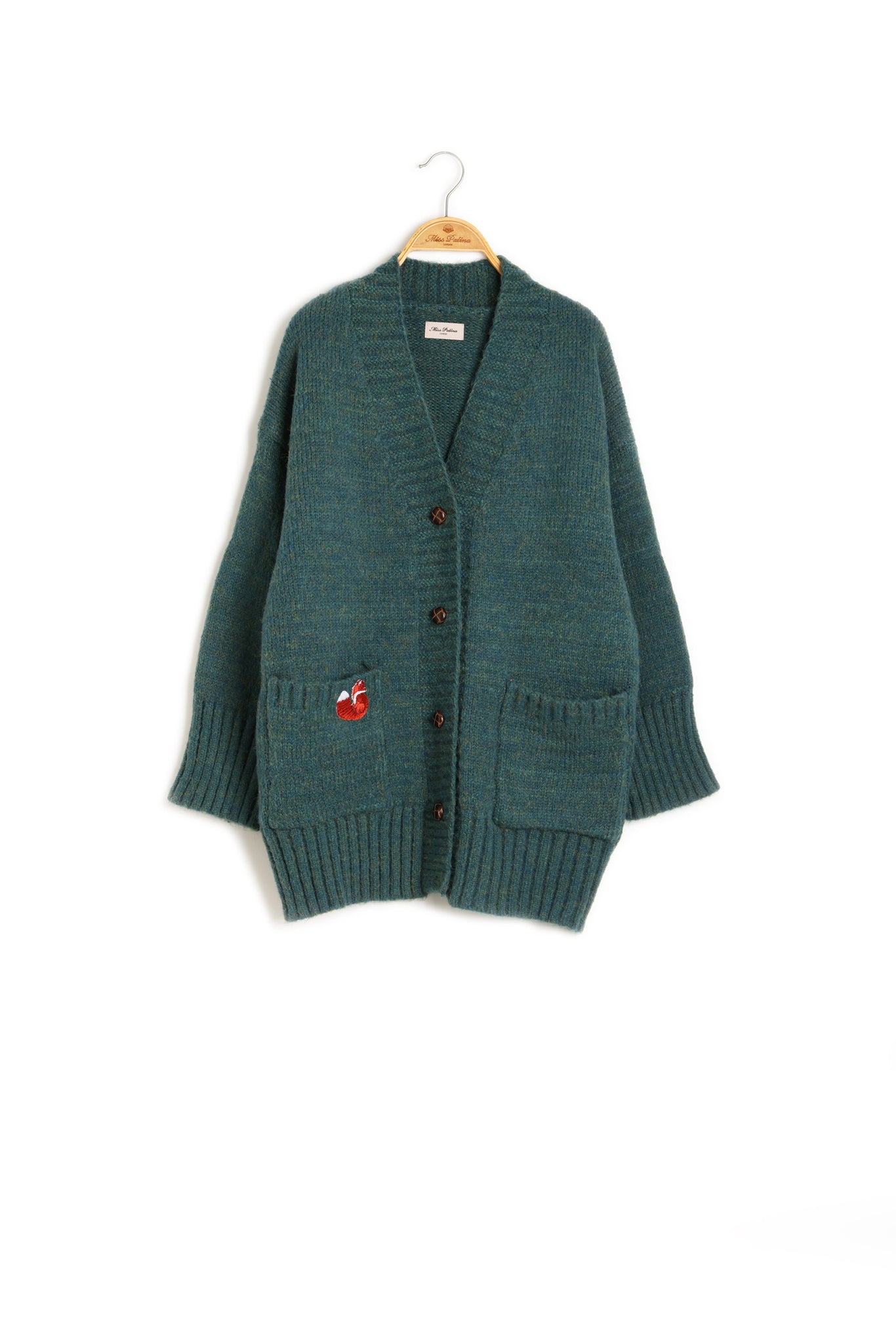 Feel snug as a bug in our new oversized teal cardigan, Crafted from a gorgeous turquoise green coloured knit sprinkled with hints of blue and gold. Featuring the cutest snuggly friendly fox embroidery on the right hand side front pocket, contrasted to turn heads and make people smile. Whilst it brings a feeling of whimsical fun, it’s perfect to be paired with a blouse and trousers to create that studious art school professor look!